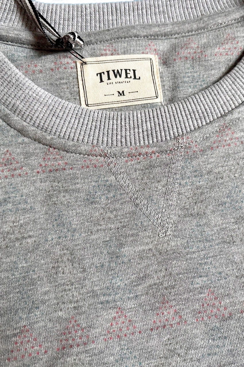 Sudadera Trisud con estampado all-over-print de triángulos multicolores y cuello de caja. Cuello, puños y cintura con elástico. Logotipo en manga izquierda y lavado pesado enzimático.